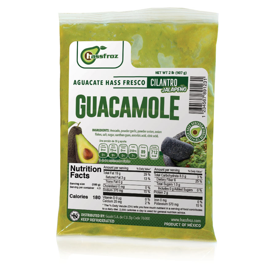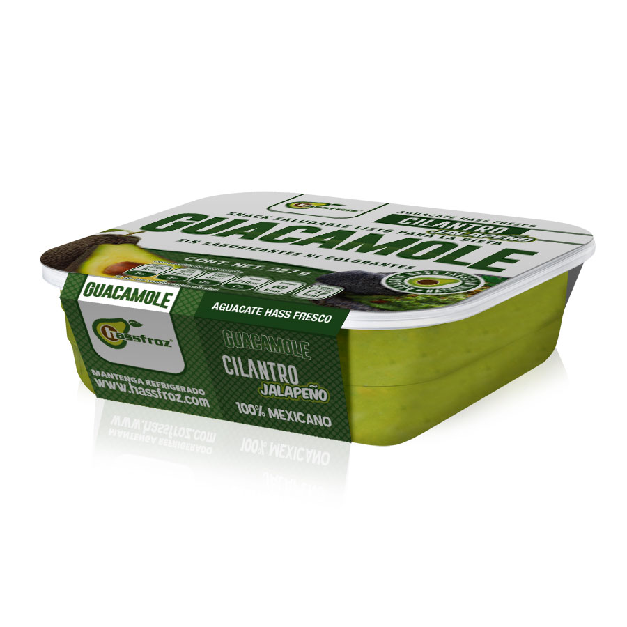 Ingredients: Hass avocado, bell pepper, jalapeño pepper, salt, onion, garlic, ascorbic acid, sodium alginate, xanthan gum, citric acid and coriander.